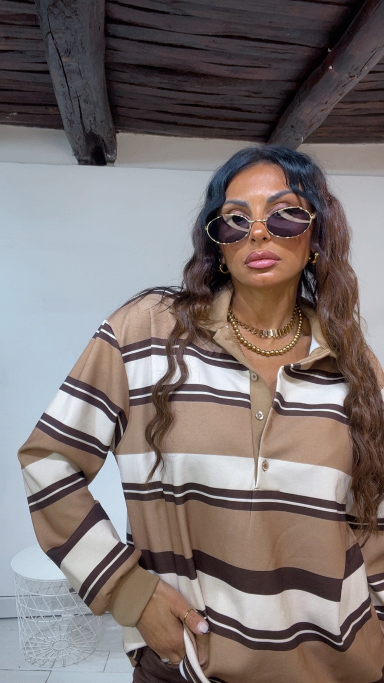 Polo fantasia ‘Righe’. Modello ‘Leggermente Over’. Interno ‘Felpato’.