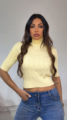 Pull ‘Simona G’ ‘Collo Alto’. ‘Mezza Manica’. Lavorazione ‘Trecce’. Leggermente ‘Crop’.