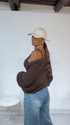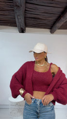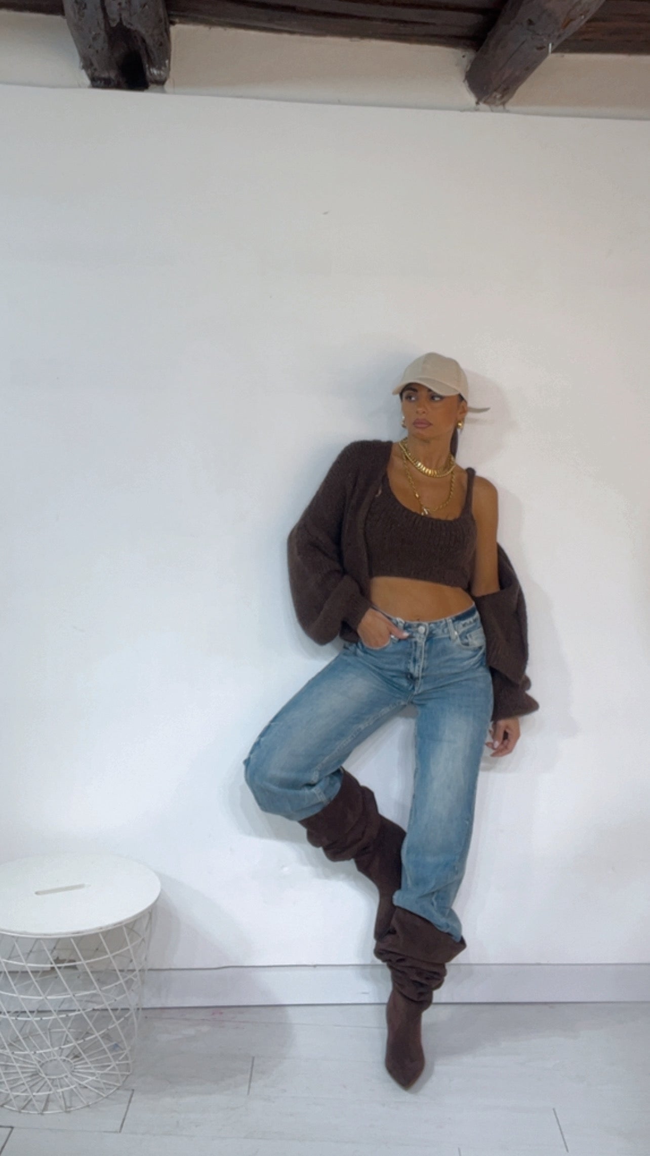 Set in lana 'mouer' 'morbidissima' composto da cardigan e top crop.