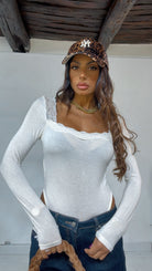 Body scollo ‘Quadro’. Rifiniture in ‘Pizzo’. In tessuto ‘SemiTrasparente’.
