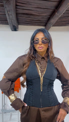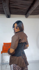 Bustino con ‘Stringhe Laterali’, chiusura ‘Zip’ davanti, ‘Laccetti’ regolabili sul retro.