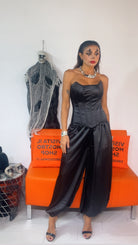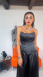 Butino in tessuto satinato,modello steccato e finitura a punta.Dotato di laccetti sul retro,che permettono di adattare la vestibilità.