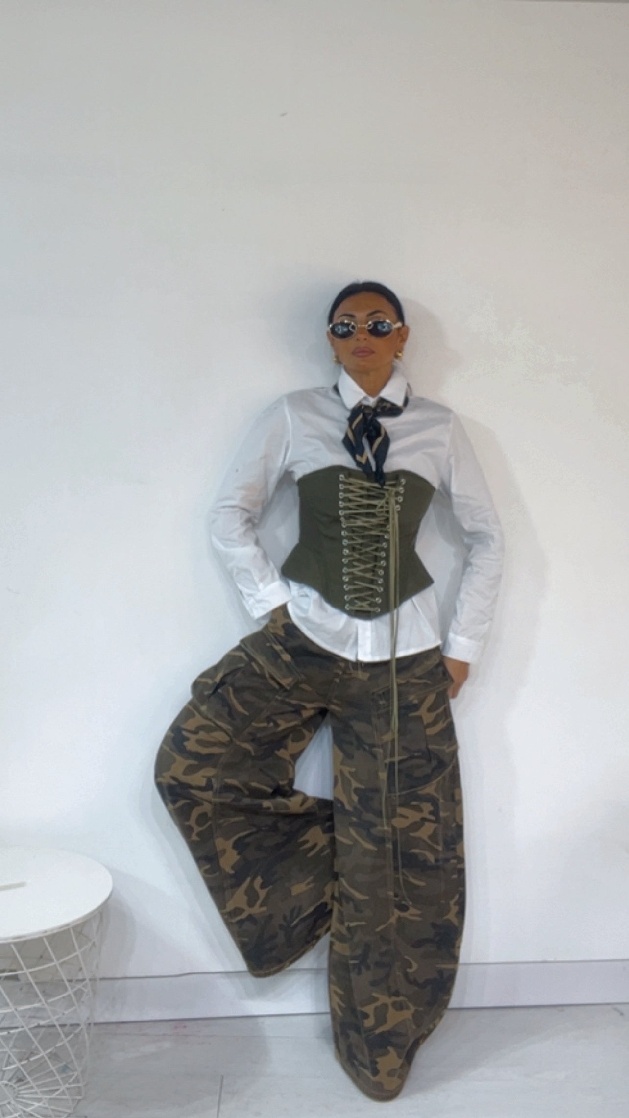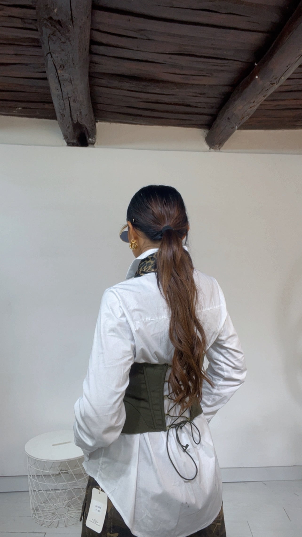 Bustino non presenta ‘Coppe’, ‘Laccetti’ regolabili davanti e sul retro. In ‘Tessuto Elastico’.