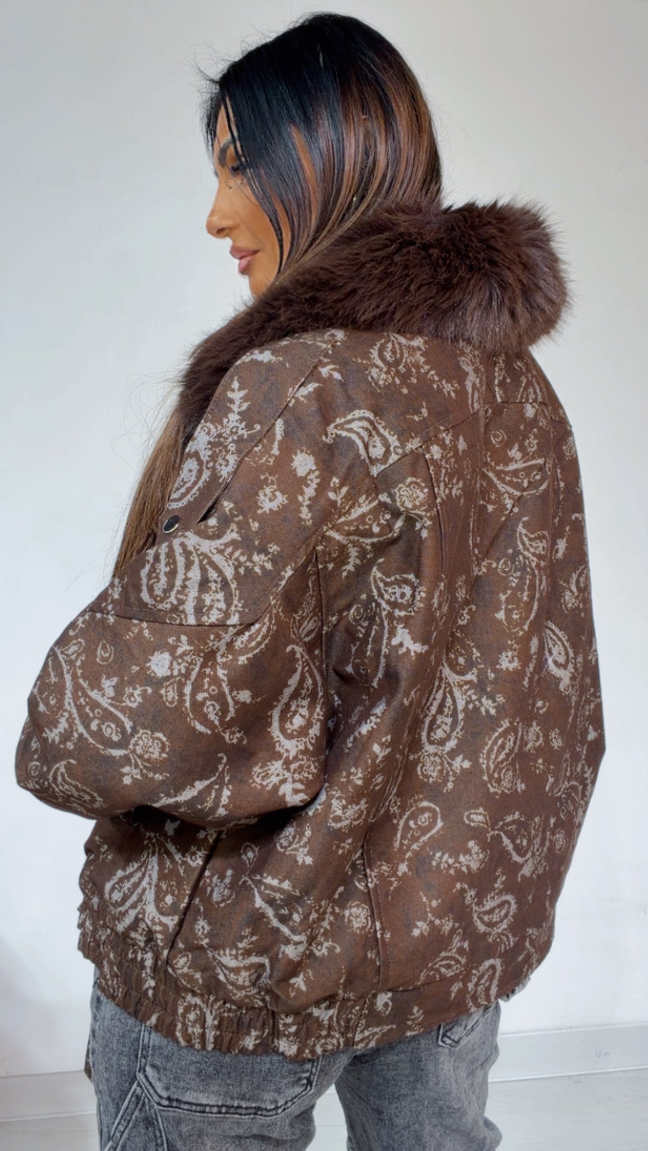 Bomber fantasia ‘Bandana’. ‘Colletto’ e ‘Interno’ in ‘EcoFur’.