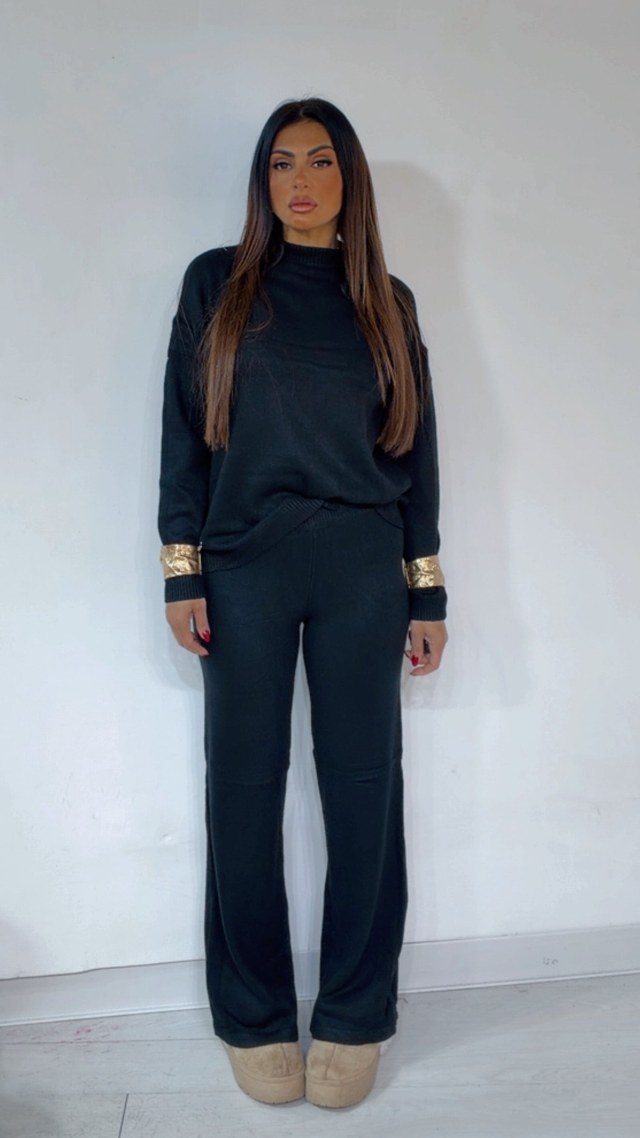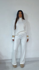 Coord Set in ‘Lana’ composto da: Pull ‘Mezzo Collo’. Pantalone vita alta con ‘Elastico e Laccetti’. Leggermente a ‘Palazzo’.