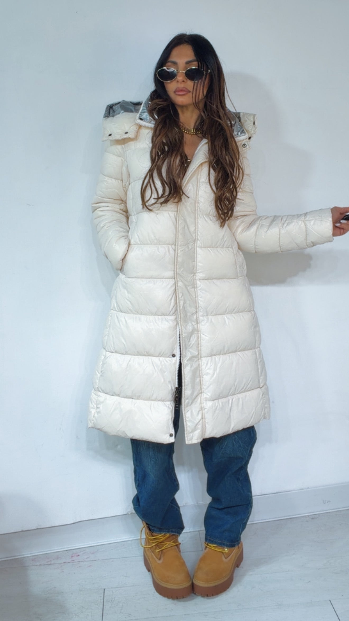 Piumino con ‘Tasche e Cappuccio Removibile’. ‘Doppio Cursore’. Modello ‘Avvitato’.
