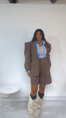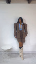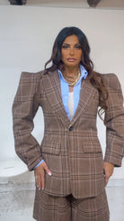 Giacca a ‘Fantasia’, con ‘Spalline a Punta’. Tessuto ‘Cappottino Sottile’. Modello ‘Avvitato’.